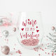 Pour la Saint-Valentin, offrez-vous un verre de votre vino favori avec ce verre sans tige pour les amateurs de vin, avec la citation "Le vin est ma Saint-Valentin" ornée de coeurs dessinés à la main.