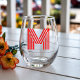 Rouge Moderne Monogramme Lettre Initiale Verre Vin Sans Ecaille