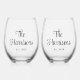 Chic monogramme mariage 2 verre de vin sans tige ensemble avec votre nom de famille marié dans un script de signature élégant et votre date de mariage dans une simple typographie moderne.