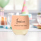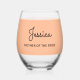Avec une couleur arrière - plan pêche fraîche, ce verre à vin sans tige présente un design élégant et minimaliste. Personnalisez avec la mère du nom de la mariée, qui sera affiché dans la typographie stylisée.