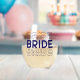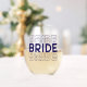 Ce verre à vin est présenté avec une impression de mariée de mariage.