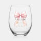 Célébrez avec style avec ce verre à vin élégant pour enterrement de vie de jeune fille. Le design présente un délicat noeud rose pâle accentué de perles et une typographie dorée sophistiquée. C'est un cadeau commémoratif parfait pour la future mariée à utiliser lors de sa douche nuptiale ou d'une soirée entre filles.