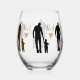 Lettres et coeurs d'or avant et arrière avec silhouettes homme et enfant. Fête des pères ou n'importe quel jour ! Style : Verre à vin. Optimisé pour le verre sans tige.