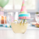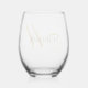 An elegant monogrammed stemless wine glass, with gold script initial with a unique bold flourish, and a black serif full first name. A Modern trendy style to dress up your bar cart for cocktail get togethers. Create a set by ordering in the quantities you would like, that would fit on your bar shelf or cart, and add style to your room decor.