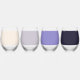 Profitez de vos rafraîchissements avec ce joli ensemble de quatre élégantes verres sans tige. Dans l'ensemble de quatre, il y a un verre de chaque couleur : pêche pâle, lilas clair, lilas moyen et violet foncé. Chaque verre peut être personnalisé avec une initiale pour former un monogramme frappant au centre du design. Simple, élégant et polyvalent, l'ensemble est un cadeau idéal pour la maison.