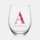 Le design présente la lettre alphabet "A" dans un motif floral rose dérivé d'une photographie de fleurs de printemps, ainsi que la typographie de script personnalisable pour le nom ou d'autres personnalisations. Personnalisez ce verre de vin sans tige monogrammé en ajoutant le nom ou les mots de votre choix pour mieux convenir à votre but ou événement! Pour des questions ou des demandes spéciales, contactez l'artiste à l'adresse wafadahdalcreates@gmail.com. © Wafa Y. Dahdal - Tous droits réservés.