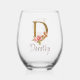 Verre À Vin Sans Pied Nom personnalisé Or Feuille Rose Blush Lettre D