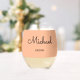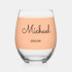 Ce verre à vin sans tige présente un design élégant et minimaliste sur un arrière - plan pêche. Personnalisez avec le nom du marié, qui sera affiché dans une élégante typographie de script.