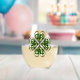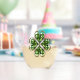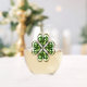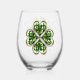 Des Shamrocks chanceux en émeraudes en or et en coeur vert créant un trèfle à quatre feuilles de part et d'autre de ce verre de vin. Un arrière - plan étoilé en or complète le produit.