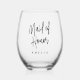Lunettes de vin sans cachet avec le texte en couleur noir ou personnalisé "Maid of honneur" dans une police de caractères élégante et nom personnalisé ci-dessous.