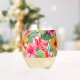 Ce magnifique verre de vin sans tige est présenté avec un joli imprimé de fleurs tropicales. L'impression se fait de part et d'autre. Image sous licence