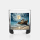 Ce vieux verre de whisky de navire est décoré d'un vieux bateau en bois, hissé sur la rive et se levant sur la pleine lune. L'image est de part et d'autre et "Bravo aux navires" et "Qu'ils reposent en paix" est imprimée de part et d'autre. Cette image est très impressionnante et stupéfiante.