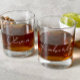 Ensemble chic de verres de whisky pour votre soirée de bachelorette avec les noms de vos invités monogrammed dans un élégant script de calligraphie blanche.