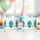 Chouettes mignonnes en marron et bleu, faites dans le style d'art populaire nordique, superposées sur une image arrière - plan enneigée. Customisez en ajoutant votre propre texte à l'envers. Vous pouvez modifier la police ainsi que la couleur du texte. Dans la mythologie normande/viking hiboux symbolisait la sagesse et l'illumination. Les Scandinaves modernes associent les chouettes à la prospérité, à la fortune et à l'intelligence.