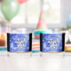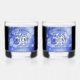 Faites du 51e anniversaire du mariage saphir une célébration inoubliable avec ces verres à vin sans tige commémoratifs ! Un lettrage élégant avec des confettis hexagonaux sur un arrière - plan bleu saphir ajoute une touche mémorable pour cette occasion spéciale et une étape extraordinaire. Customisez avec le nom du couple, la date du mariage et le message de félicitations. Reverse affiche un design identique. Design © W.H. Sim. Voir plus sur zazzle.com/expressionsoccasions