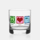 Peace Love Endoscopy whiskey glass. Un joli cadeau avec un signe de paix, un coeur et un endoscope utilisés dans les procédures médicales pour désigner un patient.