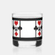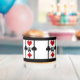 Parfaites pour les boissons sur Poker Night ou votre prochaine Card Party, ces verres personnalisées à whiskey présentent un design original d'inspiration Art Déco avec un thème de jeu de carte composé de 4 ensembles de symboles de couleur rouge et noir brillant (losange, trèfle, coeur et pique) avec un champ de texte personnalisé pour votre monogramme au centre, posé sur un arrière - plan blanc de neige avec des bandes verticales épaisses et fines.