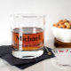 Cadeau moderne unique pour le père de la mariée, ce verre de whisky porte son nom dans une grande police audacieuse et tendance et "Père de la mariée" dans une simple typographie.