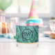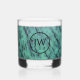 Verre à whisky qui présente l'image photo d'une pierre minérale Zoisite verte avec des initiales personnalisées à l'intérieur d'un cercle noir bordé. Image imprimée sur un côté seulement du verre. Personnalisez votre verre en éditant et en remplaçant les initiales par les vôtres. Fait un grand cadeau pour le collectionneur de roches et d'agates!