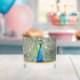 Verre à Whiskey qui présente l'image photo d'un beau paon bleu avec un plumage de queue coloré. Image imprimée sur un côté du verre.