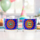 Une image fractale en spirale multicolore, rose orange et bleu sur un arrière - plan plus foncé. Customisez en ajoutant votre propre texte à l'envers.