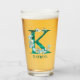 Verre Aquarelle Turquoise et or Monogramme Lettre K