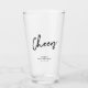 Ce verre à bière personnalisé est parfait pour une fête d'anniversaire d'étape moderne. Le design comporte des lettres de brosse " Cheers " avec du texte personnalisé. Des invitations d'anniversaire et des fournitures de fête sont disponibles dans ma boutique BaraBomDesign. Merci!
