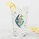 Ce magnifique verre de boisson moderne du milieu du siècle présente des boomerangs, des cercles et des formes diamant dans un mélange de couleurs turquoise, bleue, bronzée, or et noir.