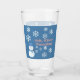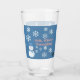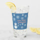 A Slice of Life and Delight présente Hello, Winter Wonderland en verre avec un bonhomme de neige décoré de flocons de neige blancs, d'écriture rose et d'un fond bleu. Le tondeuse en verre de bonhomme a aussi un casquette bleu et une écharpe.