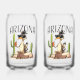 The illustration depicts an Arizona Roadrunner perched comfortably atop a sun-warmed rock in the desert. With a relaxed posture, the bird holds a refreshing beverage in one wing, its colorful plumage catching the golden light of a late afternoon. Around the Roadrunner, sparse cacti and rugged stones evoke the distinctive landscape of the Southwest, while the bird's cheerful expression and laid-back pose invite viewers into a moment of carefree leisure.