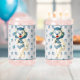 Ceramic lion blowing kisses while wearing swimsuit and earrings. Heart shape flower background. Great for summer soda party.