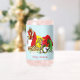 Trois petits dragons qui jouent parmi le casquette rouge Père Noël, des biscuits et un verre de lait dans un décor bleu