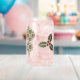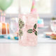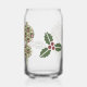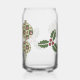 Quatre carrés en vert et bronzé sont ornés de rouge décoré de flocons de neige blancs et de houx vert aux baies rouges. La couture blanche ajoute une touche décorative, donnant au motif répétitif l'aspect d'une courtepointe, créant une sensation de douceur pour les vacances de Noël. La forme d'un ornement en larme crée un masque pour le design pour ajouter une touche saisonnière finale. Cette verrerie est également disponible dans les styles vin et roche sans tige.