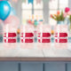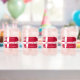 Un ensemble de verres branché présente une brosse artistique moderne illustrant le drapeau national du Danemark avec une incrustation de texte rouge