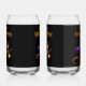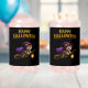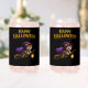 Sirotez votre ecchymose effrayante préférée avec style grâce à ce verre magique en forme de canette de chaton sorcière représentant un chaton tabby joyeux volant dans le ciel nocturne sur son balai, avec une cape de chapeau de sorcière violette et une lanterne lumineuse. Cette illustration très détaillée est posée sur un fond noir élégant avec des lettres gras "Joyeux Halloween", ce qui en fait un ajout parfait à votre collection de barware d'octobre ou un cadeau charmant pour les amoureux des chats.