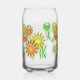 Three dimensional daisies in orange, yellow, and green with green blades of grass.