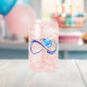 Luminous infinity symbol with glowing, beautiful, lushly blooming rose made of blue flames on black background.