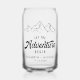 Offrez un toast mariage et un cadeau souvenir amusant à vous et à vos invités mariages, groomsmen et fête de mariée avec cette bière personnalisée peut verre avec un croquis de montagnes, "Let The Adventure Begin" écrit dans un mélange de typographie simple et un script rétro, et vos noms et date mariage.