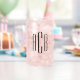 Un simple monogramme noir de trois lettres sur un verre de boîte. Ajoutez une couleur arrière - plan si vous préférez plus de couleur sur votre verrerie imprimée. Créez votre propre cadeau monogrammé pour les nouveaux mariés.