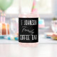 Il s'agit d'un nom de famille personnalisé, d'un design à thème café. Ce design moderne est en noir et blanc classique, avec typographie de script de style rétro/vintage. Il vous permet d'ajouter votre nom de famille et votre année d'établissement. Idéal pour votre cuisine familiale, votre café maison ou espace bar et idéal comme cadeau de ménage. Pour personnaliser, il vous suffit d'ajouter votre nom et votre année dans la zone de texte personnalisée, ici vous pouvez changer le texte "Barre du café" si vous le souhaitez. Pour modifier la couleur ou la police, extrayez l'outil d'édition de conception. Pour obtenir de l'aide sur la personnalisation, la mise en correspondance de produits ou pour un design personnalisé, contactez-moi par zazzle conversation.