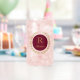 Le nom personnalisé peut façonner le verre est affiché avec l'impression de couronne d'or d'un gagnant avec un exemple d'initiale et de nom. Arrière - plan couleur vin dans le cercle. Customisez cet article et changez le nom de l'exemple en votre nom.