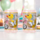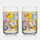 Playful and unique yellow paper duck with pocket watch soda glass, fun conversational piece for soda party or friendly gathering.