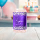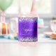 Customisez le nom de script de calligraphie de style classique et monogramme pour créer votre propre boîte de verre pour elle. Parties scintillant en faux argent et art numérique en feuille violet violet brossé. Customisez la couleur de police violet et blanc si vous voulez.