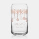 Introducing our Personalized Rose Gold Glitter Cooking Tools Can Glass. Featuring faux blush pink glitter, kitchenware. and customable texts on white background. Suitable as gift for cooking enthusiasts or Chefs.