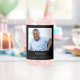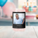 Personnalisez et ajoutez une photo, un nom et un âge/date. Arrière - plan noir, texte blanc.