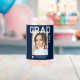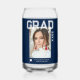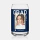 Photo Graduation Party Elégant Script moderne Personnalisé Can Glass Beer Glass avec votre photo préférée avec le texte blanc simple "Grad (année)" et votre nom et les détails de graduation personnalisée sur un arrière - plan bleu. Parfait pour une fête de remise de diplômes. Créé par ©Evco Studio www.zazzle.com/store/evcostudio