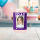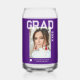 Photo Graduation Party Elégant Script moderne Can Glass Beer Glass présentez votre photo préférée avec le texte blanc simple "Grad (année)" et votre nom et les détails de graduation personnalisés sur un arrière - plan violet. Parfait pour une fête de remise de diplômes. Créé par ©Evco Studio www.zazzle.com/store/evcostudio