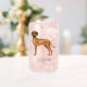 L'illustration originale de Destei d'un mignon chien de race Rhodesian Ridgeback. Le chien est debout et regarde vers le spectateur. Il y a aussi une zone de texte personnalisable pour un nom ou un autre texte personnalisé.