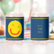 Un soleil jaune aux yeux verts souriant sur un arrière - plan bleu. Customisez en ajoutant votre propre texte à l'envers. Vous pouvez modifier la couleur du texte et de l'arrière - plan.
