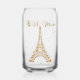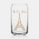 Tour Eiffel or, lettres d'or sur un lit de minuscules étoiles dorées Anniversaire ou toute occasion. Style : Verre de canne imprimé.